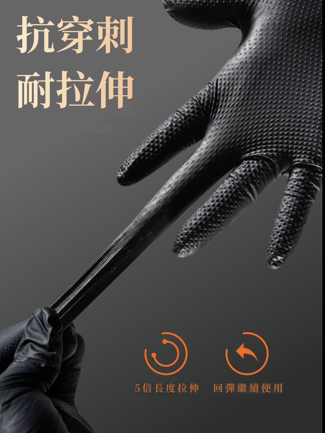 本產品使用丁腈膠乳(NBR)製作,具有良好的彈性及耐用性。